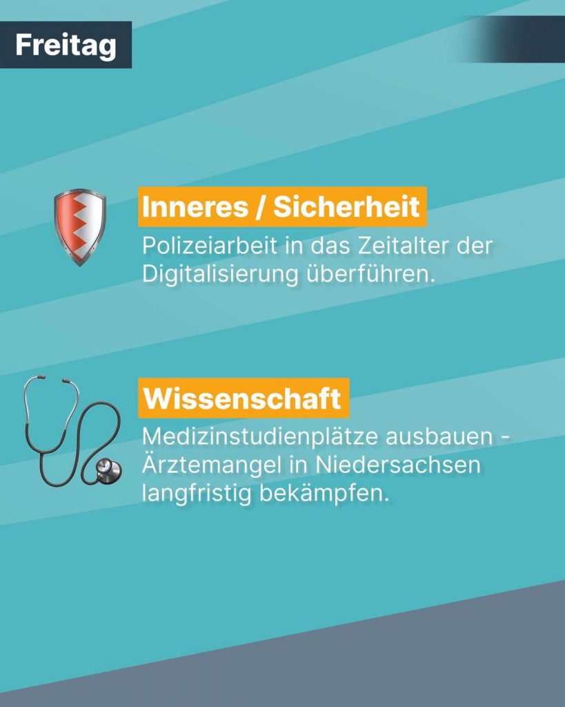- sowie Zukunftsthemen wie digitale Polizeiarbeit und zusätzliche Medizinstudienplätze.