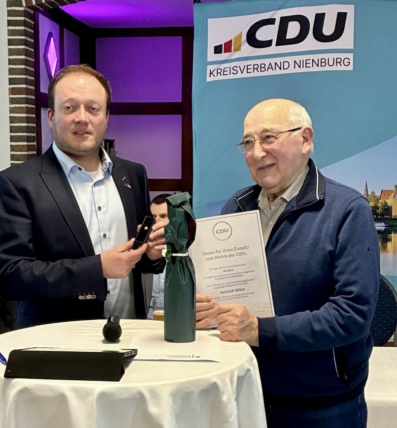 Neben dem Bericht unseres Bundestagsabgeordneten Axel Knoerig aus Berlin und der besonderen Ehrung von Heinrich Witte für 50 Jahre Parteizugehörigkeit prägte vor allem die engagierte Rede unseres Landratskandidaten Dennis Seebode den Abend.